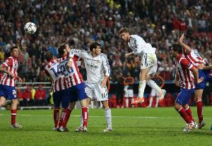 马竞球员一抵达伯纳乌球场,就看到了他们历史上一些最令人痛心的画面。在通往更衣室通道的视频墙上,按照惯例,播放着皇家马德里近年来赢得的欧冠冠军画面。当马竞球员们穿过皇马球场的通道时,拉莫斯的头球破门以及米兰那场点球大战的画面反复播放。